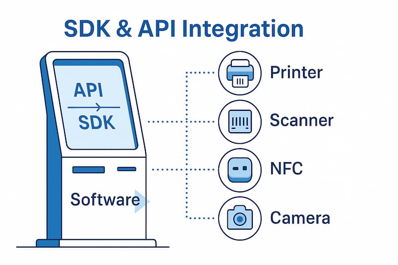 That’s why a complete Kiosk Hardware SDK (Software Development Kit) and API (Application Programming Interface) are essential. They help software connect smoothly with hardware, reduce errors, and speed up deployment.